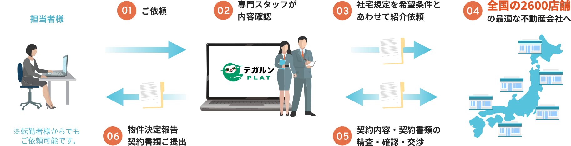 転勤者のお引越しとお部屋探しを、安心、お手軽に行えるテガルンPLAT